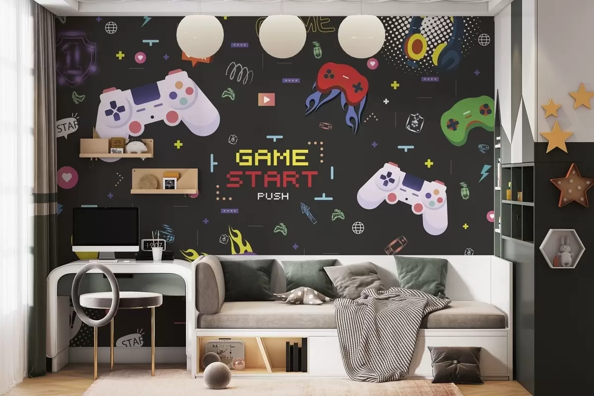 Stenske poslikave Svetel vzorec za igralce z igralnimi konzolami in pikseliranim besedilom Št. w04581