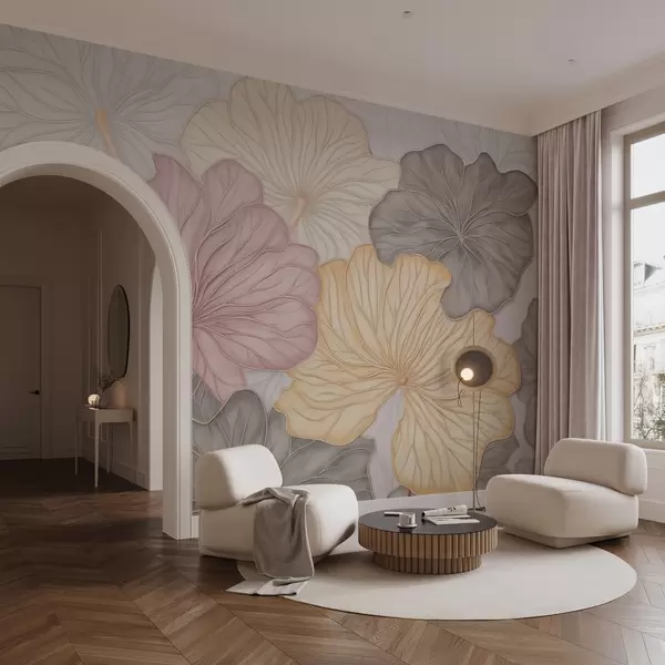 Stenske poslikave Veliki pastelno obarvani listi z drobnimi žilami Št. w04612