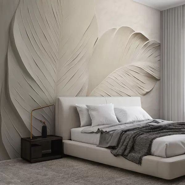 Stenske poslikave Reliefni bež listi z mehkimi sencami Št. w04614