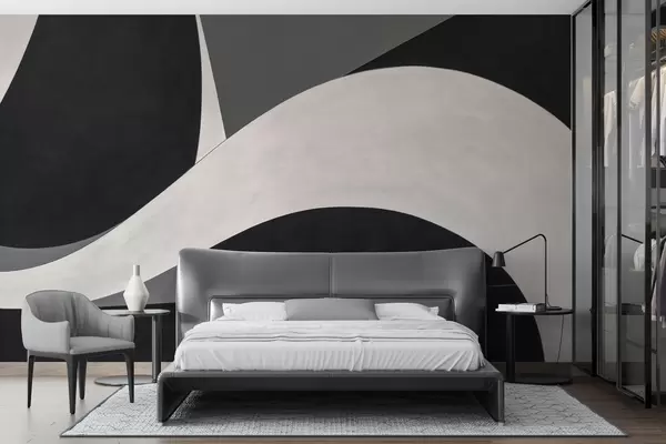 Stenske poslikave Črna in siva abstrakcija z mehkim valom Št. w04615