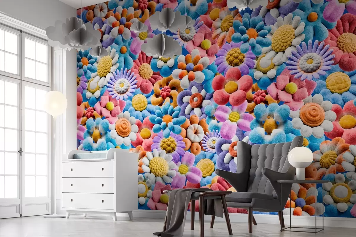 Stenske poslikave svetli puhasti cvetovi Št. w04626