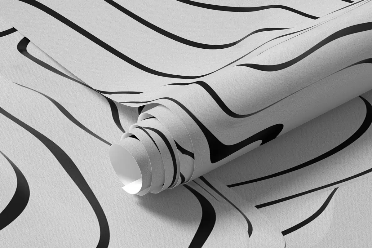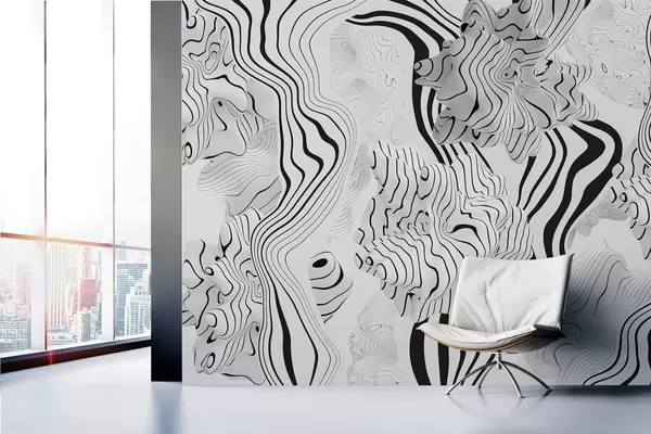 Stenske poslikave abstraktne organske oblike v 3D slogu v belih in sivih odtenkih s črnimi črtami Št. w04627