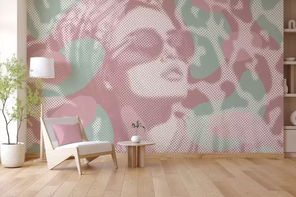 Stenske poslikave portret ženske na leopardovem ozadju v pikastem slogu v rožnatih in zelenih tonih Št. w04630v2
