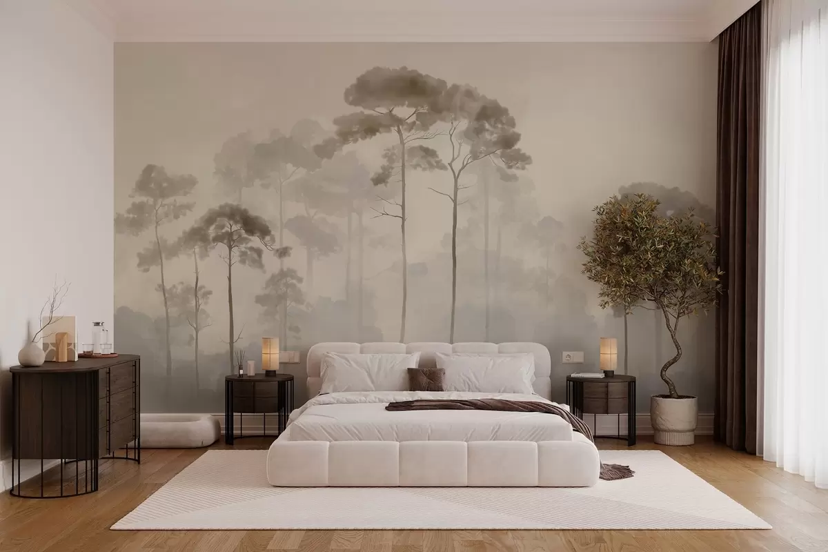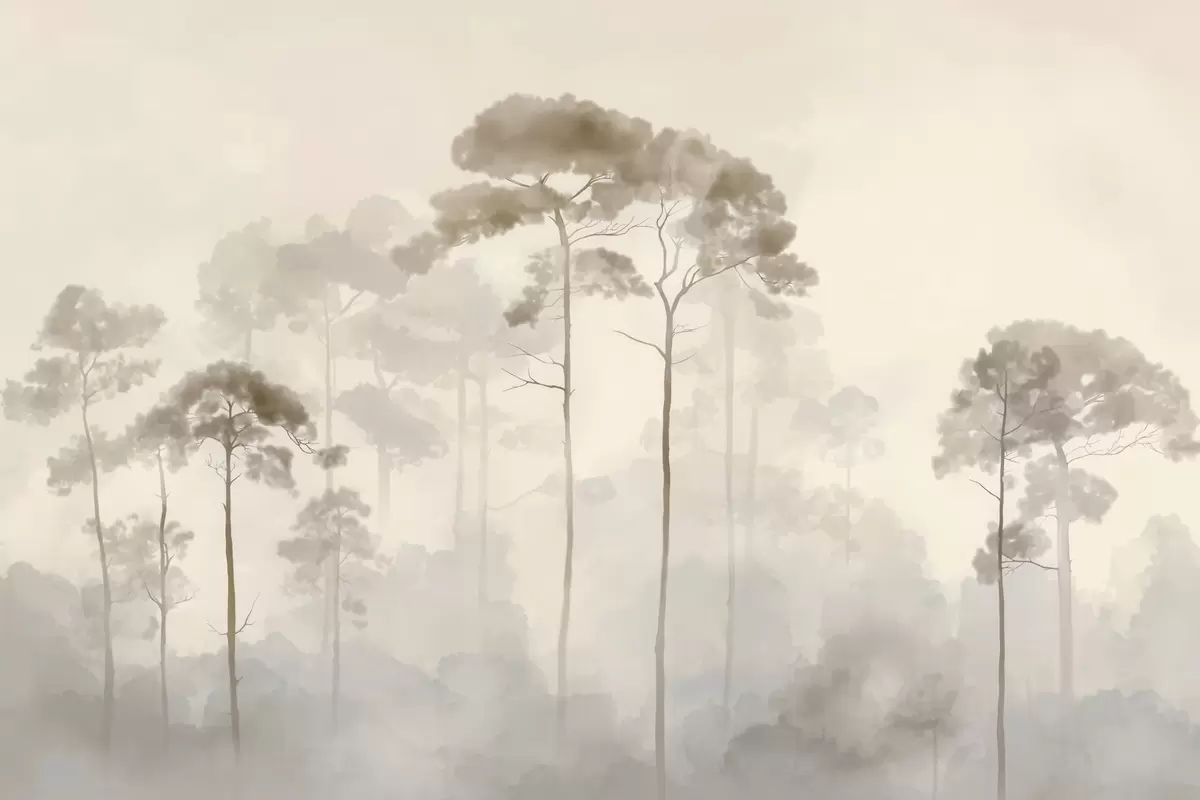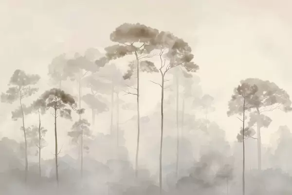Stenske poslikave lahke silhuete borovcev v akvarelnem slogu Št. w04634