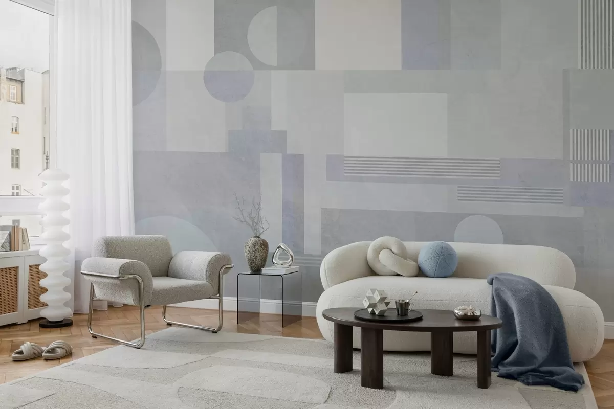 Stenske poslikave abstrakna geometrija v sivo-modrih odtenkih Št. w04635v2
