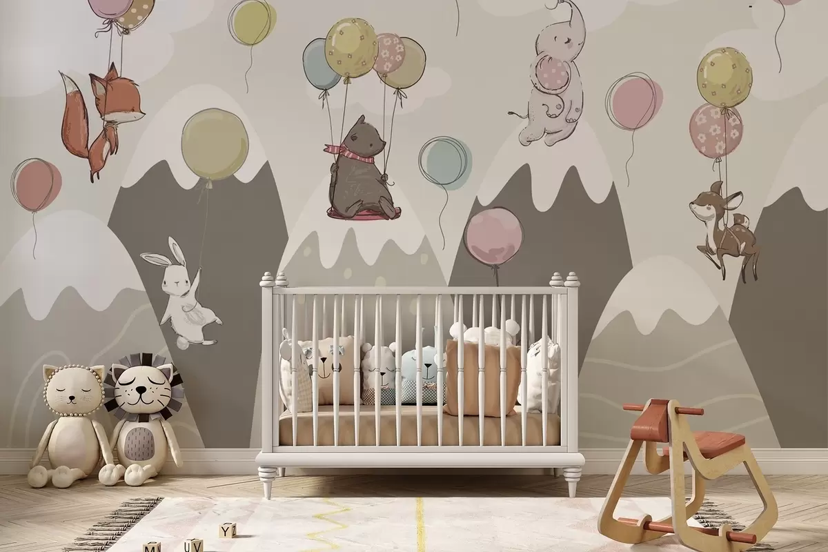 Stenske poslikave Otroške skandinavske gore z živalmi Št. w04651