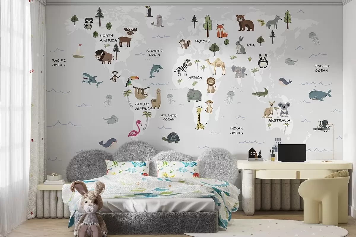 Stenske poslikave Zemljevid sveta z živalmi Št. w04663