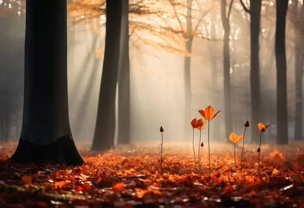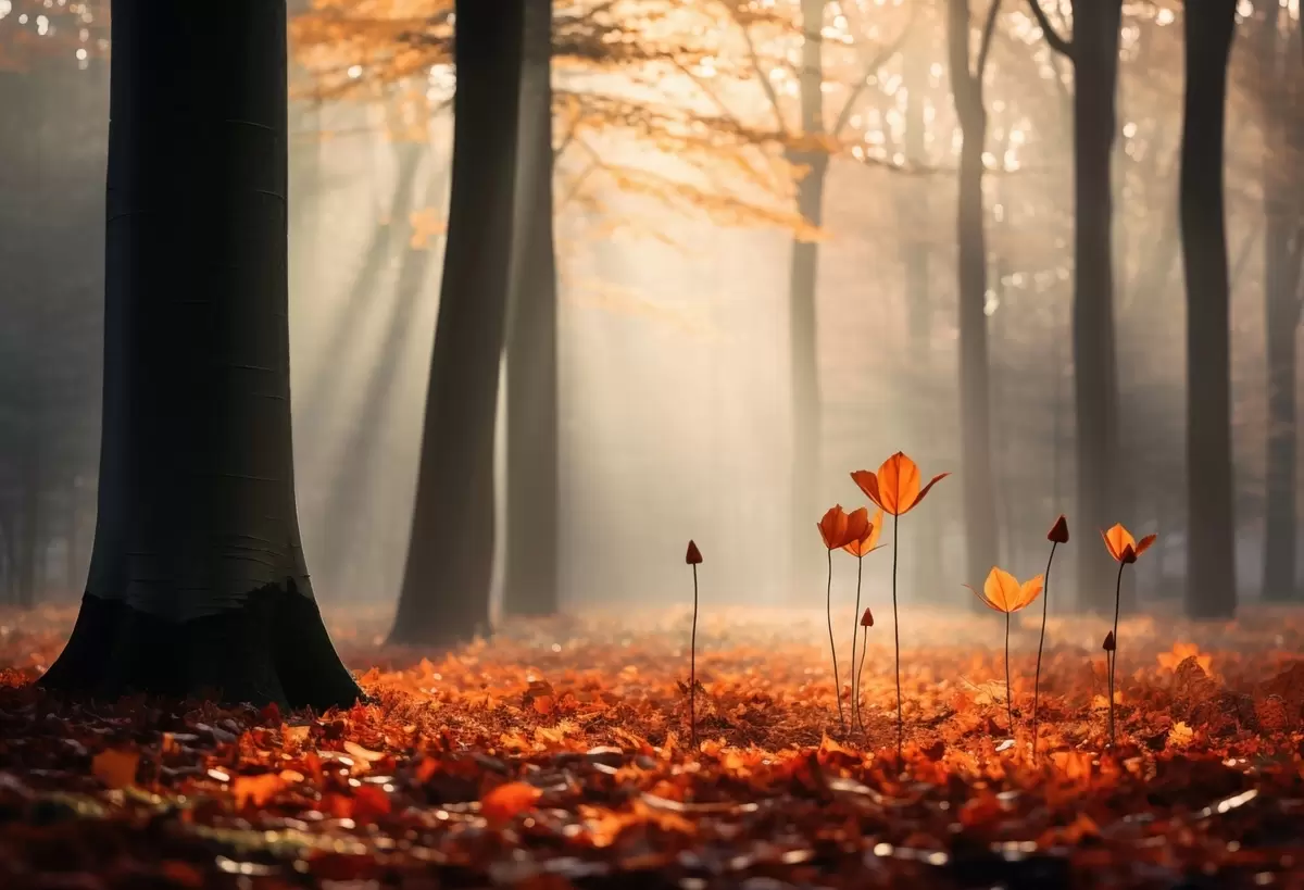 Stenske poslikave Jesenski gozd s sončnimi žarki in svetlim listjem Št. w04710