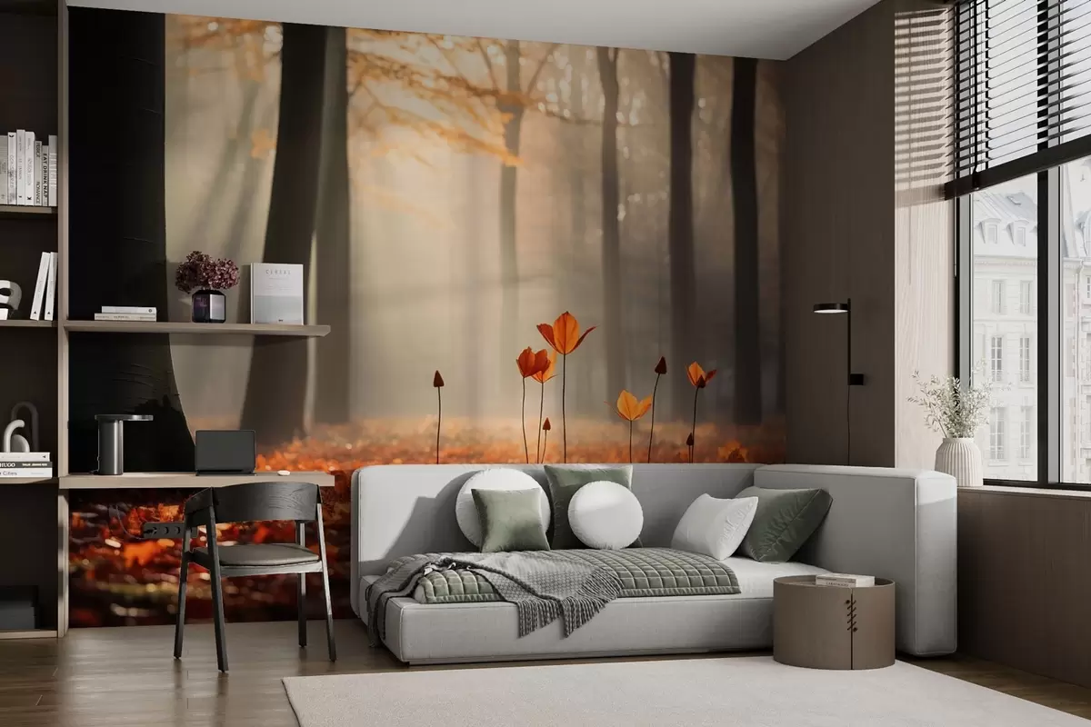 Stenske poslikave Jesenski gozd s sončnimi žarki in svetlim listjem Št. w04710