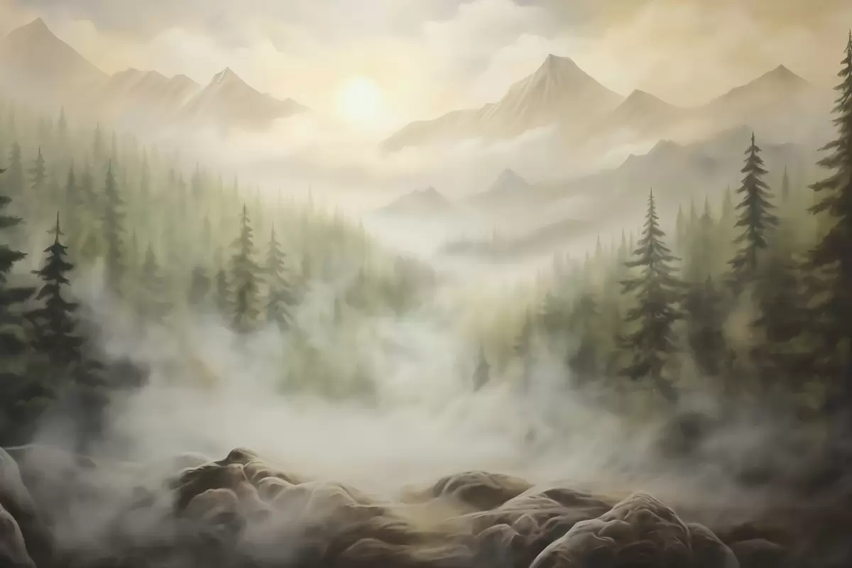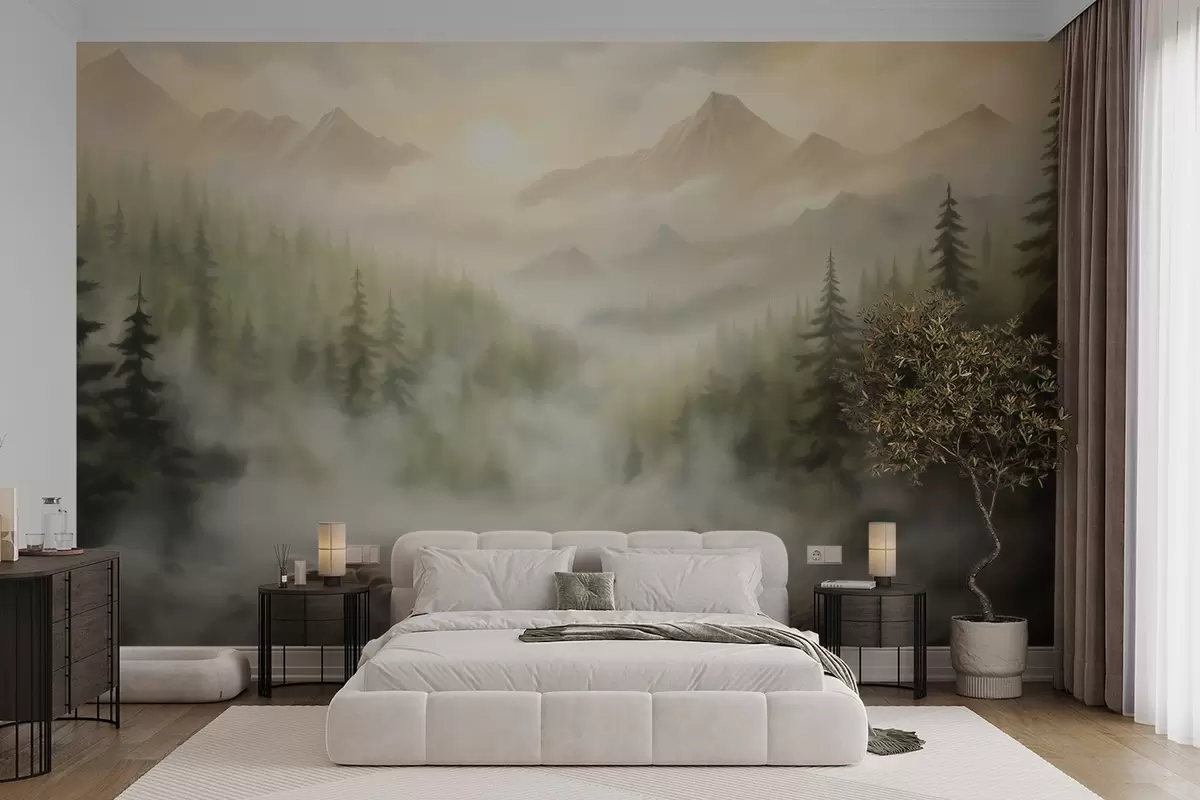 Stenske poslikave Gozd v megli na ozadju gora Št. w04730