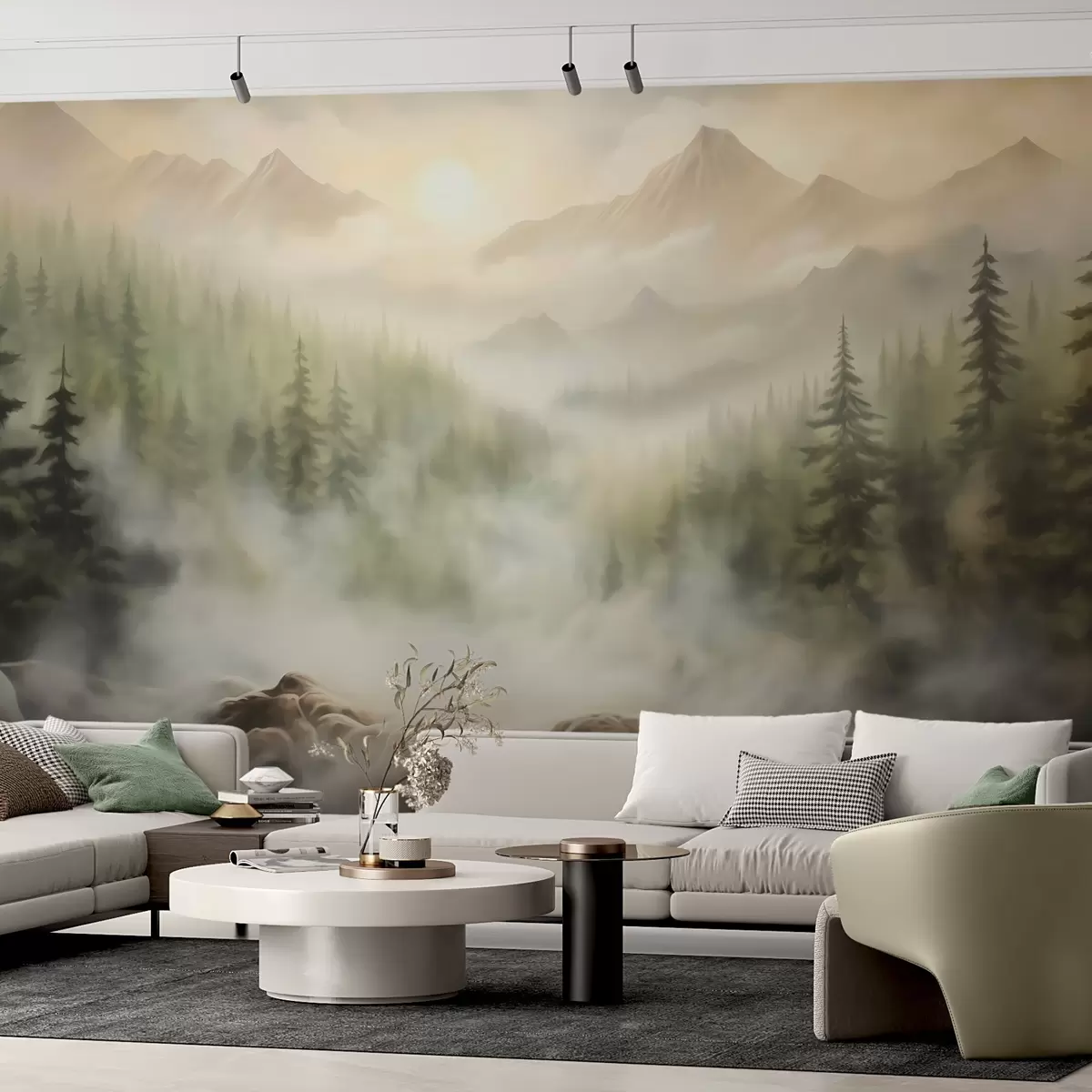 Stenske poslikave Gozd v megli na ozadju gora Št. w04730