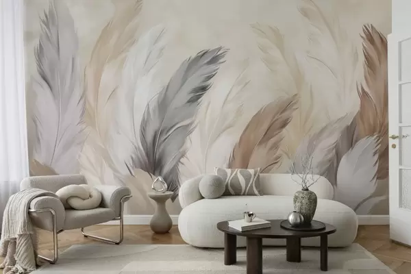 Stenske poslikave Mehka, puhasta perja v topli nevtralni barvni paleti Št. w04736