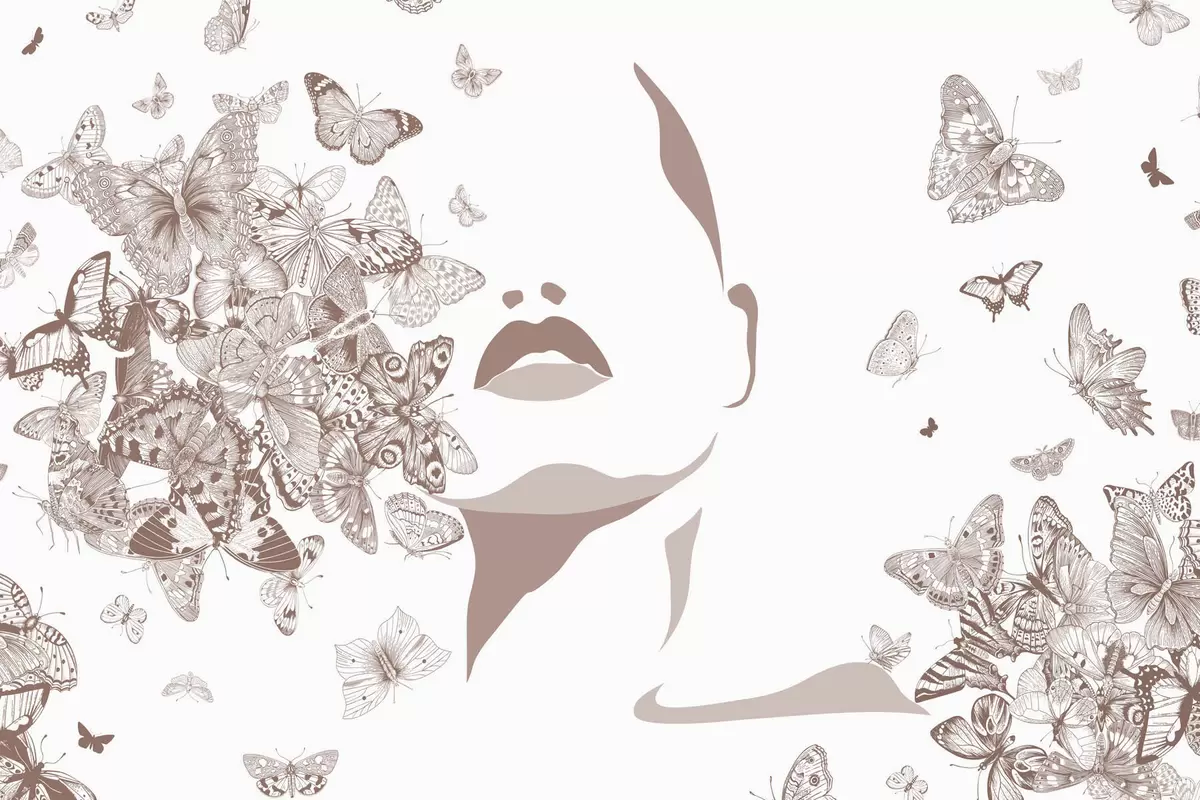 Stenske poslikave Silhueta obraza med metulji Št. w04778