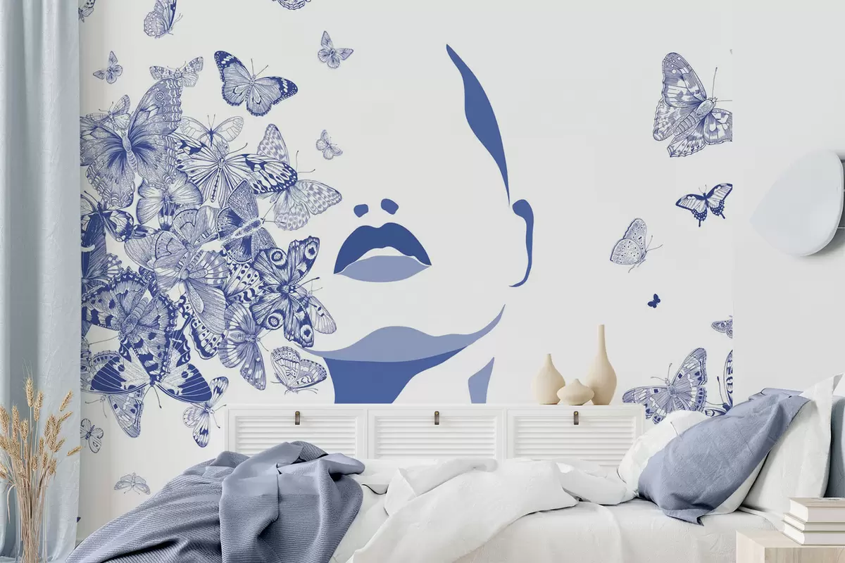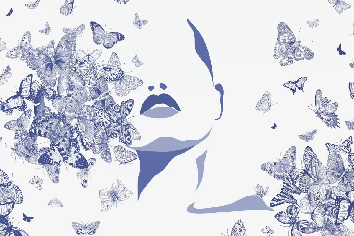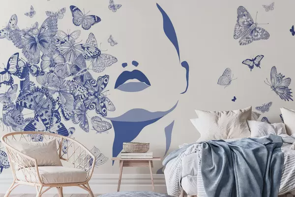 Stenske poslikave Silhueta obraza med metulji Št. w04778v1
