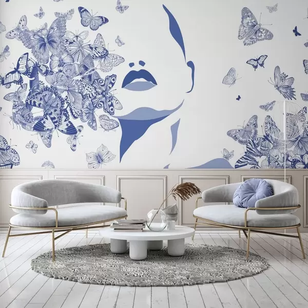 Stenske poslikave Silhueta obraza med metulji Št. w04778v1