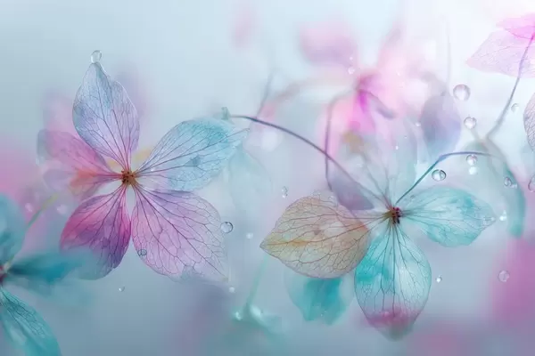 Stenske poslikave nežni cvetovi z žilami pod vodo Št. w04809