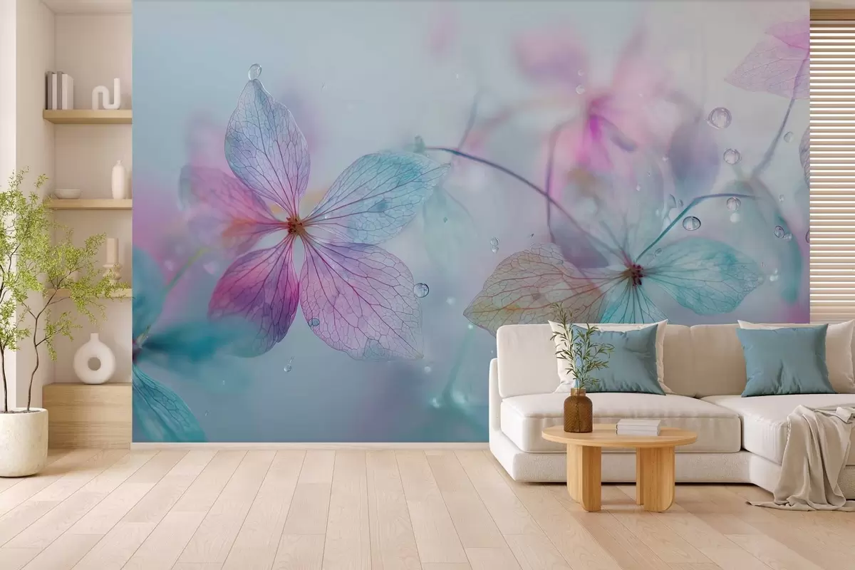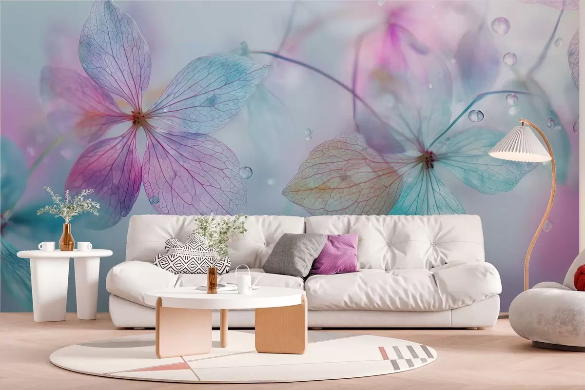 Stenske poslikave nežni cvetovi z žilami pod vodo Št. w04809