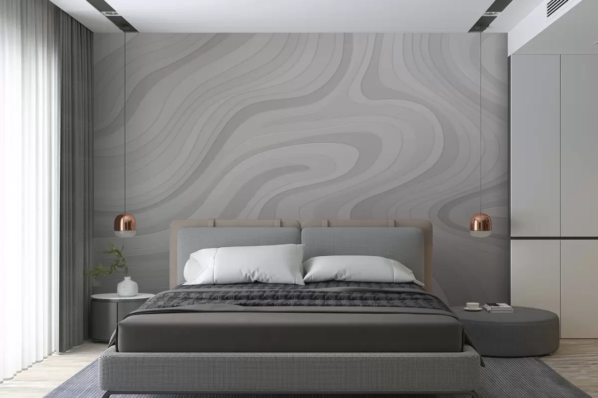Stenske poslikave abstraktne valove v sivih odtenkih Št. w04813v1