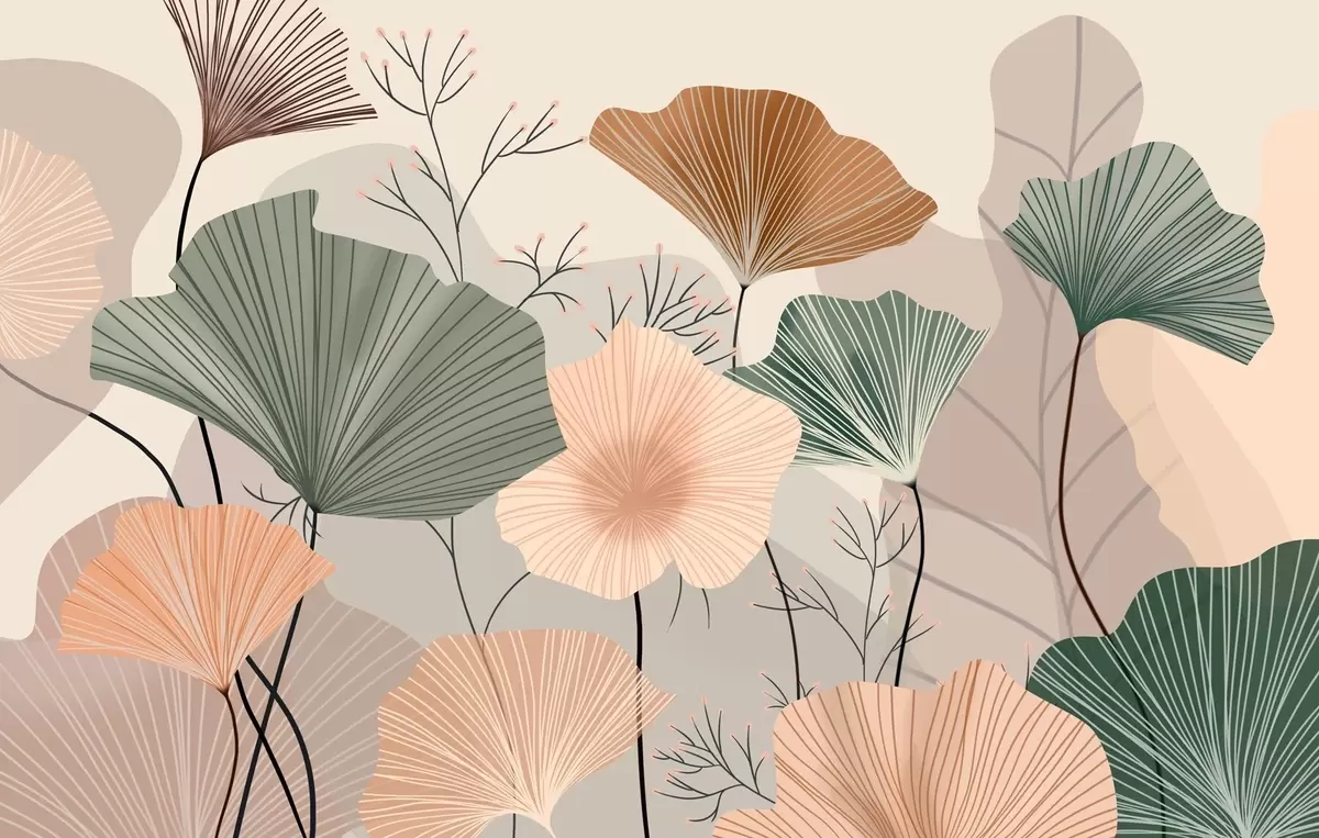Stenske poslikave elegantni lotusovi listi Št. w04815