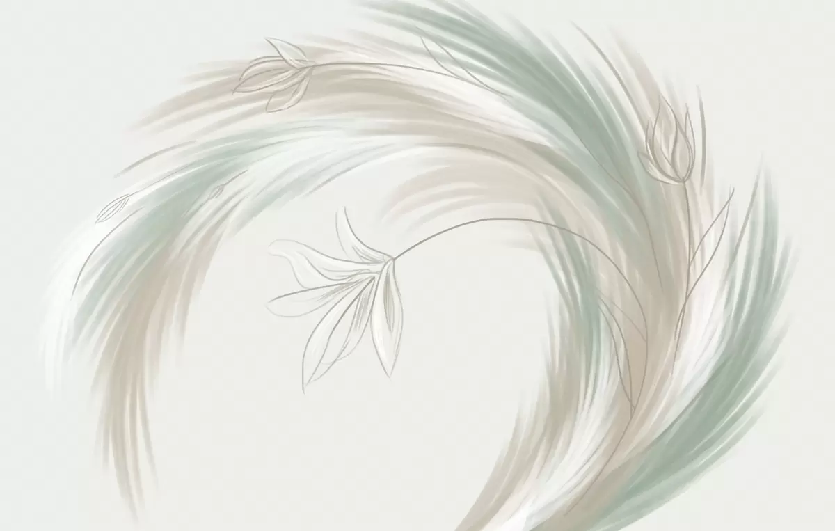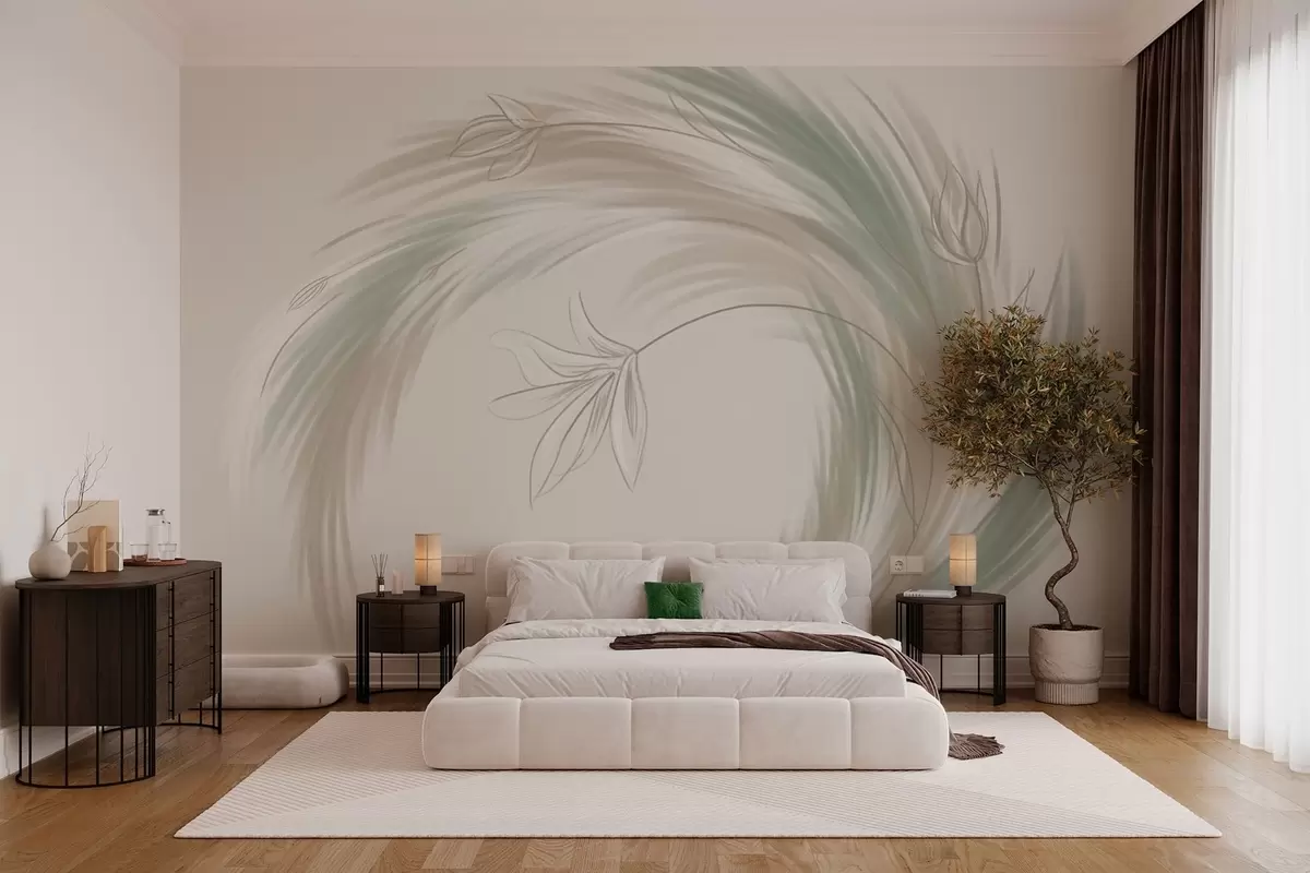 Stenske poslikave zelene in bež perje in cvetje, ročno poslikano Št. w04816