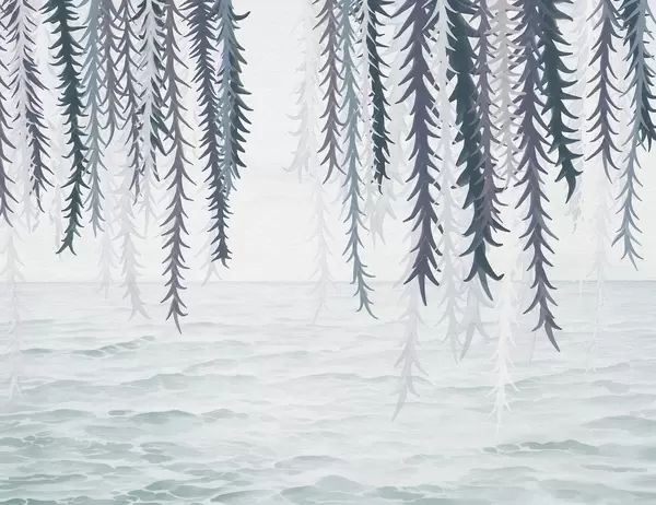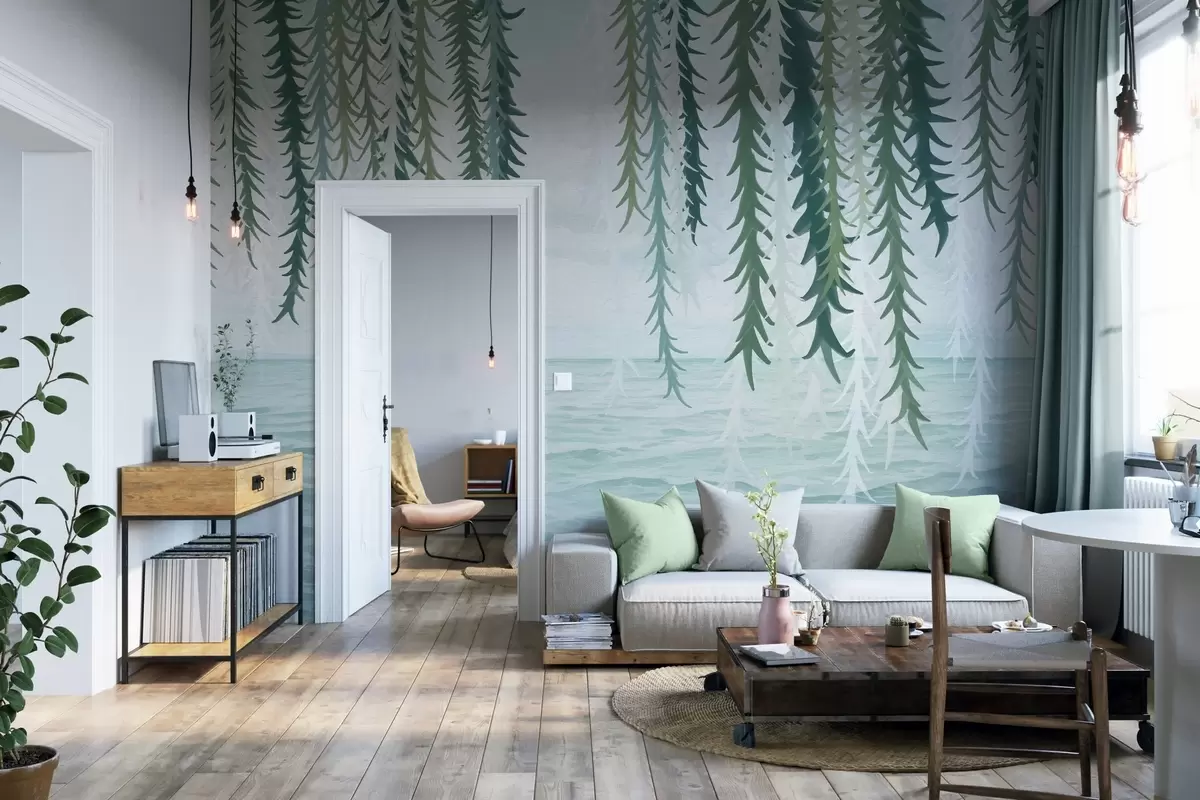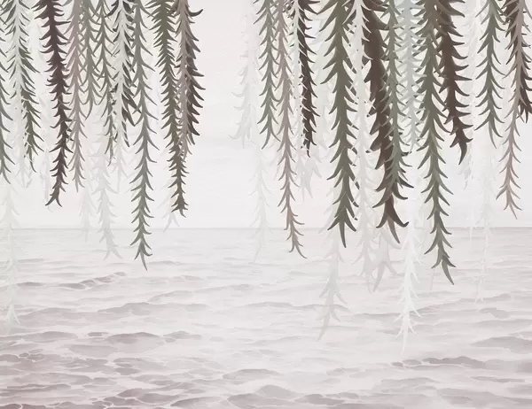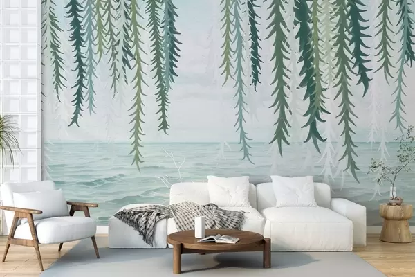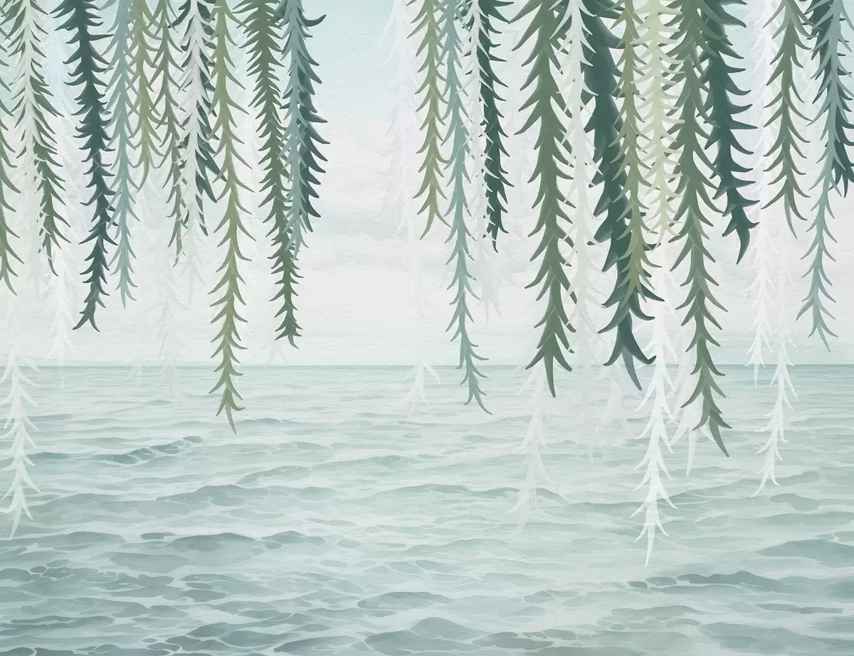 Stenske poslikave Nežne vinske trte, ki visijo nad vodo, v akvarelnem slogu Št. w04830