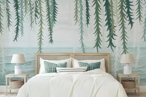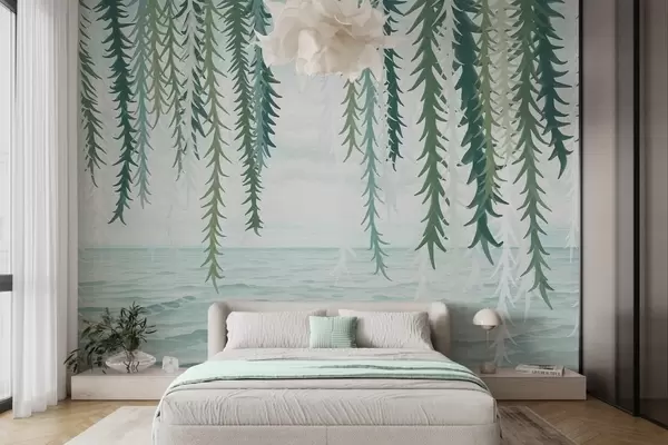Stenske poslikave Nežne vinske trte, ki visijo nad vodo, v akvarelnem slogu Št. w04830