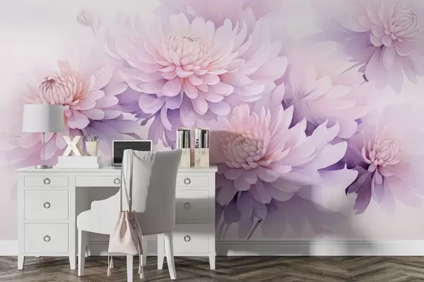 Stenske poslikave Bujne akvarelne krizanteme na svetlem ozadju Št. w04832