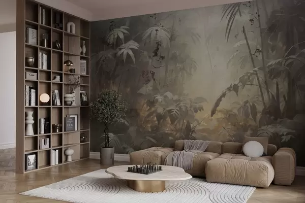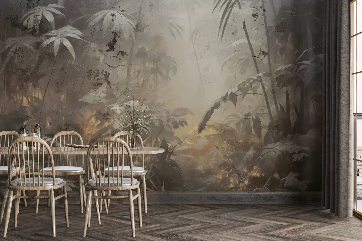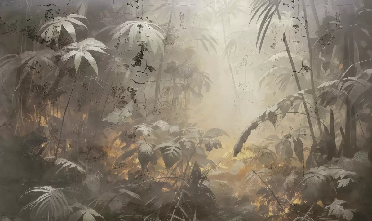 Stenske poslikave Naslikana džungla za grunge betonsko steno Št. w04833