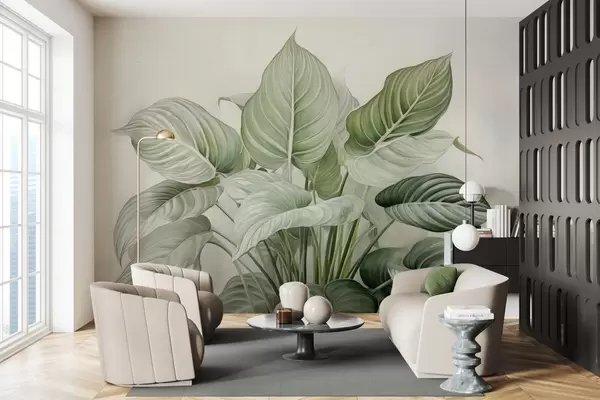 Stenske poslikave Bujna grmovnica zelenih listov na steni Št. w04835