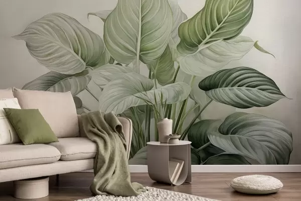 Stenske poslikave Bujna grmovnica zelenih listov na steni Št. w04835