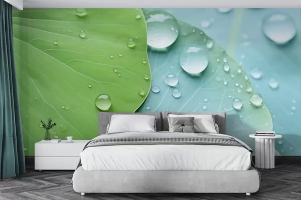 Stenske poslikave Kapljice vode na listih makro akvarel Št. w04838