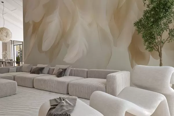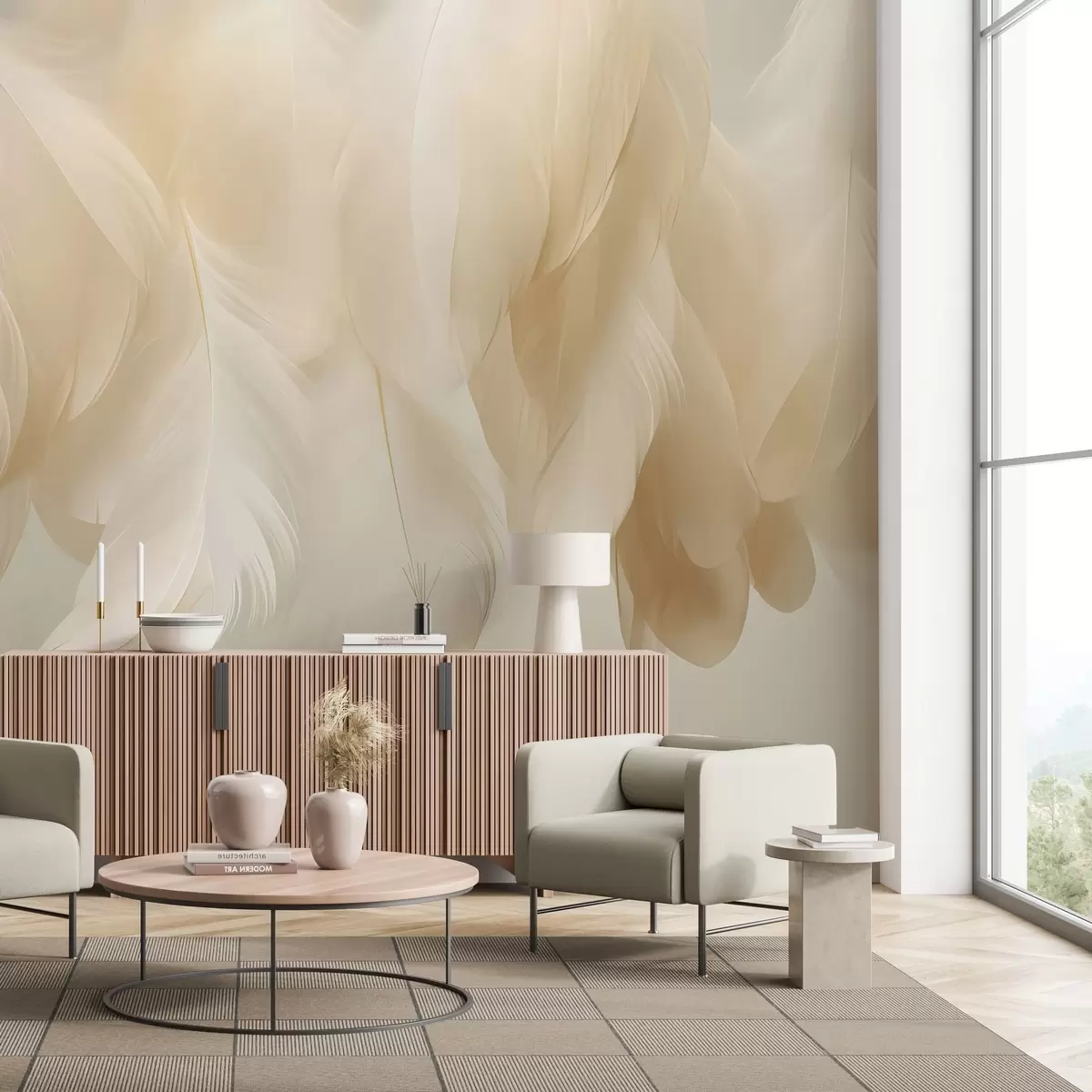 Stenske poslikave Bujna in nežna viseča peresa v pomirjujočih barvah Št. w04842