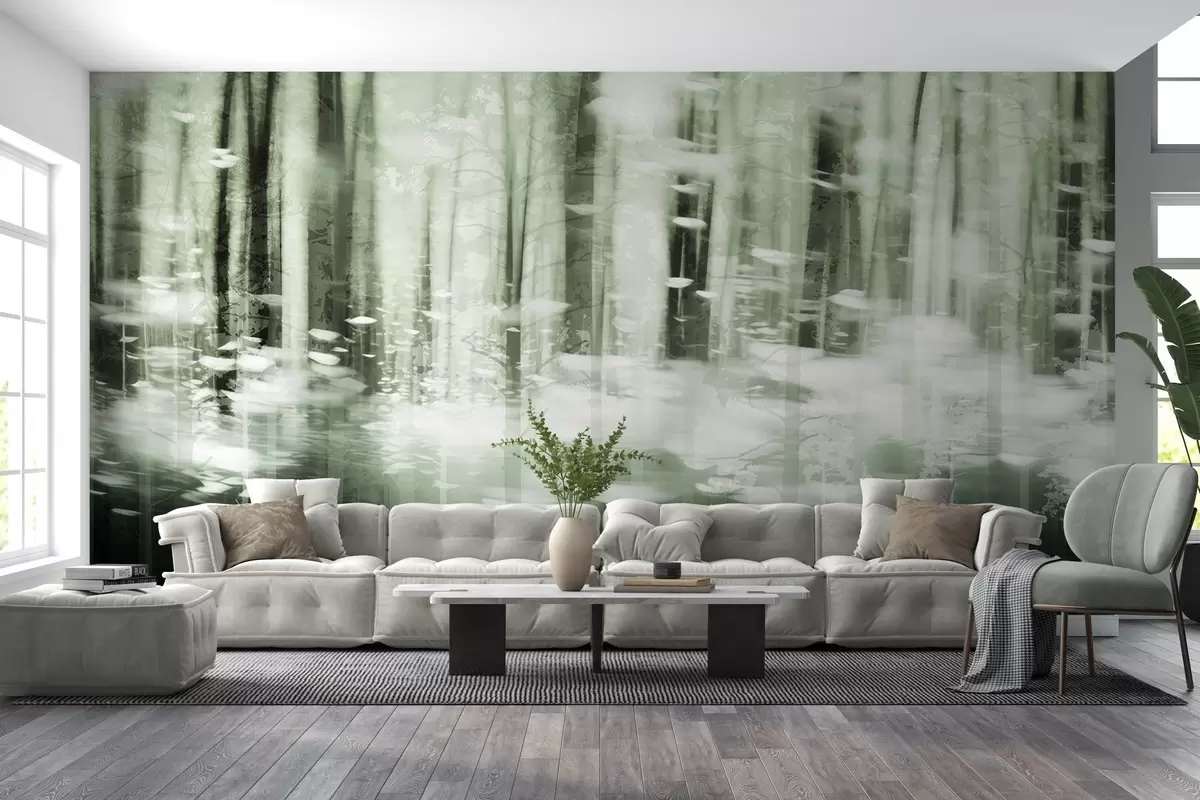 Stenske poslikave Stilizirani debla dreves v pastelnih barvah Št. w04844v3