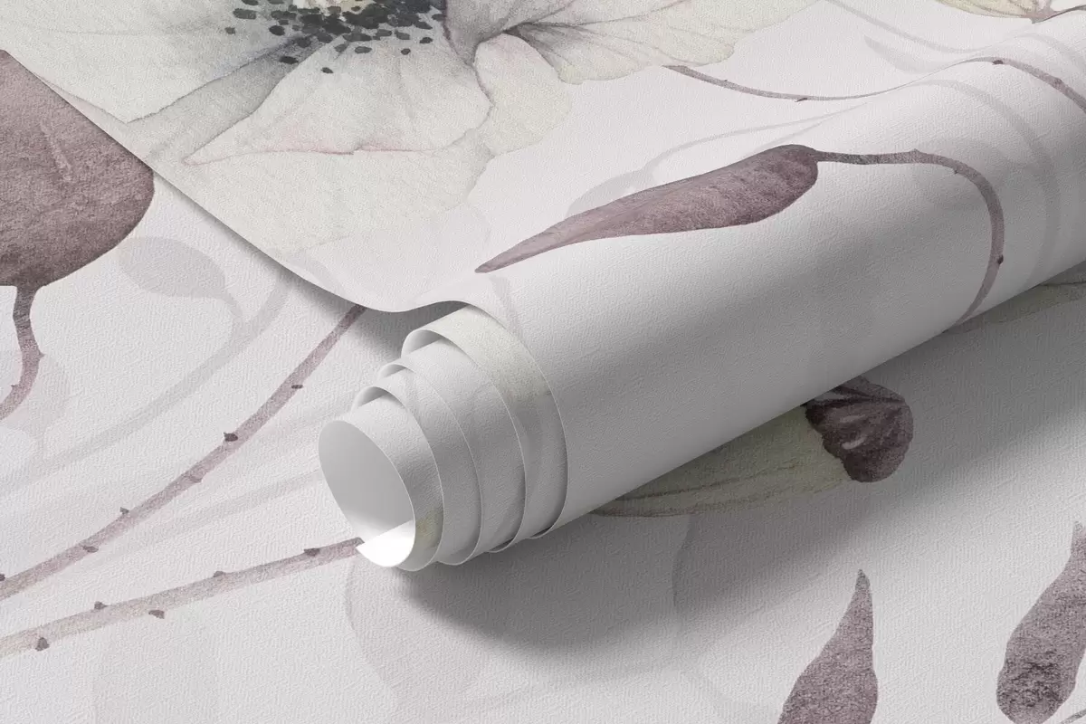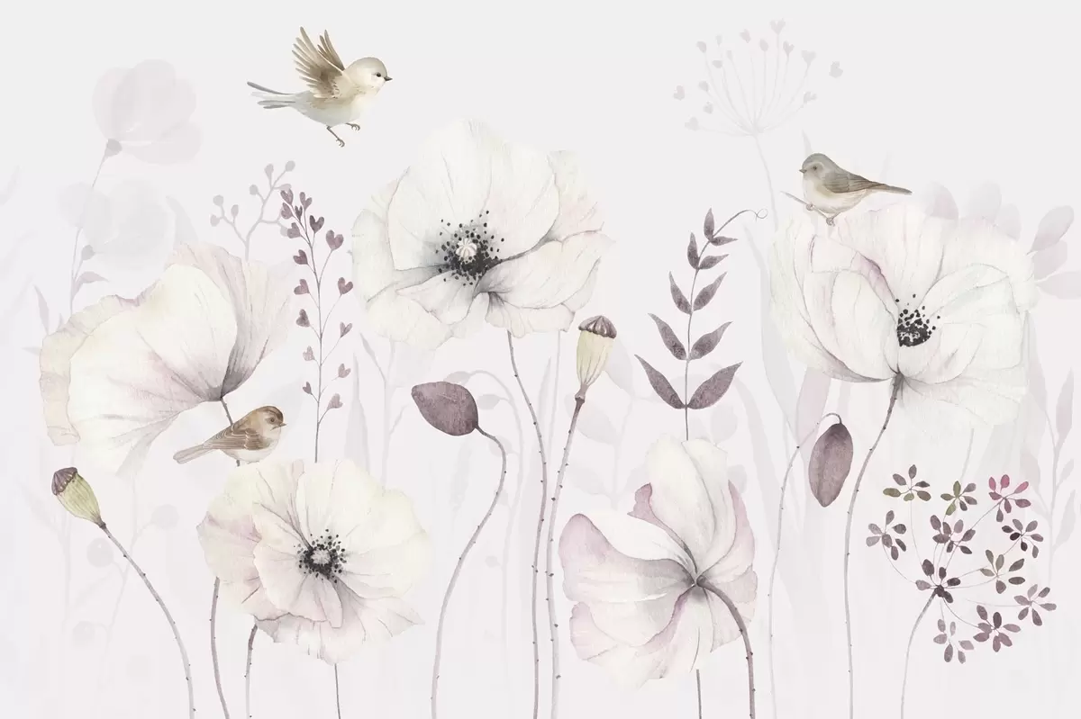 Stenske poslikave Akrilne makove cvetlice z majhnimi pticami v nežni vijolični barvi Št. w04861