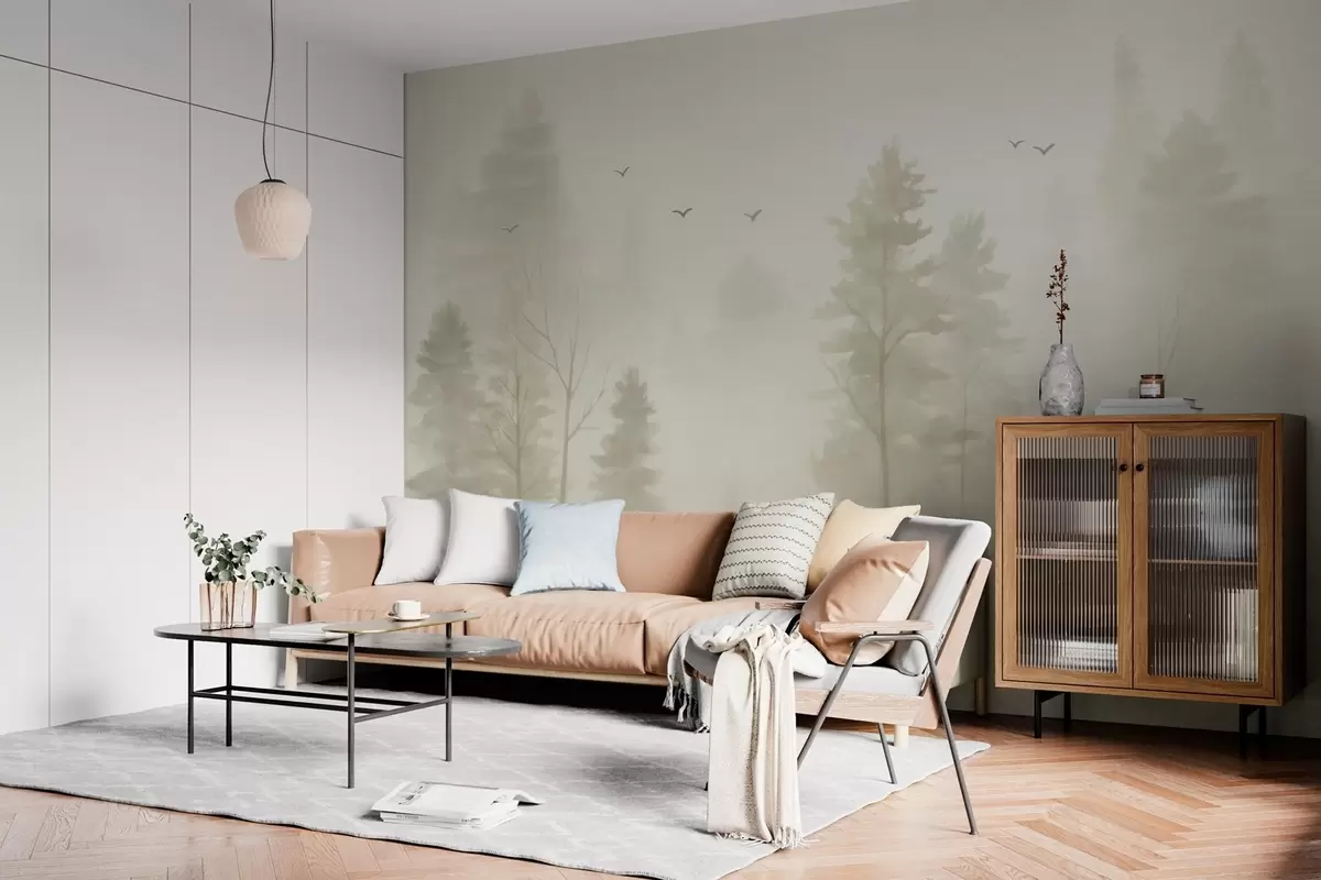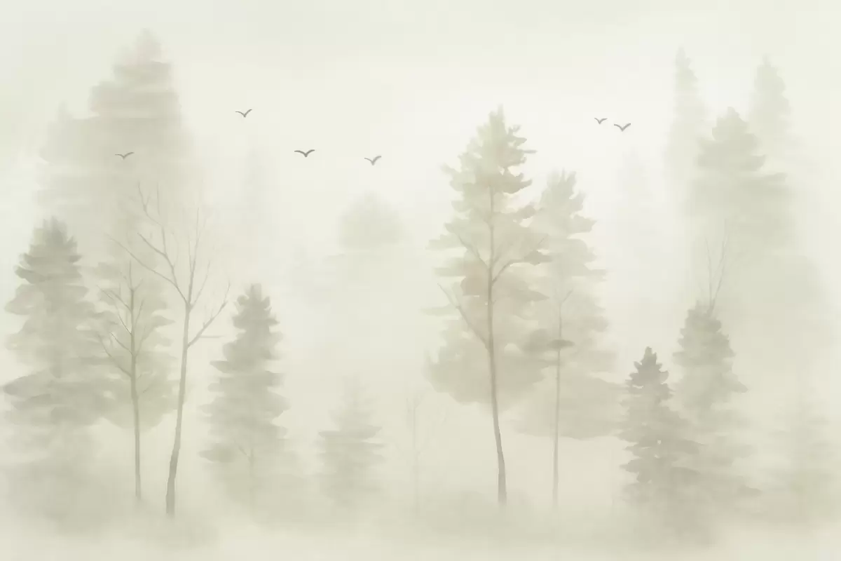 Stenske poslikave akvarelni gozd v bež barvah Št. w04872
