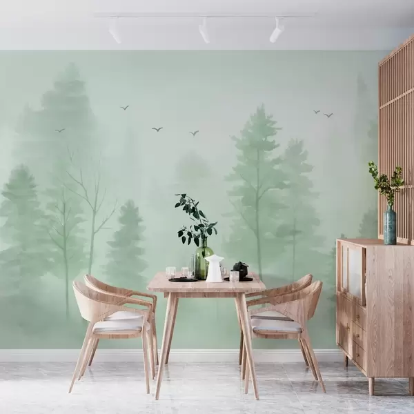 Stenske poslikave akvarelni stil zračni gozd v zelenih odtenkih Št. w04872v1