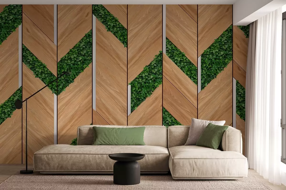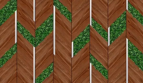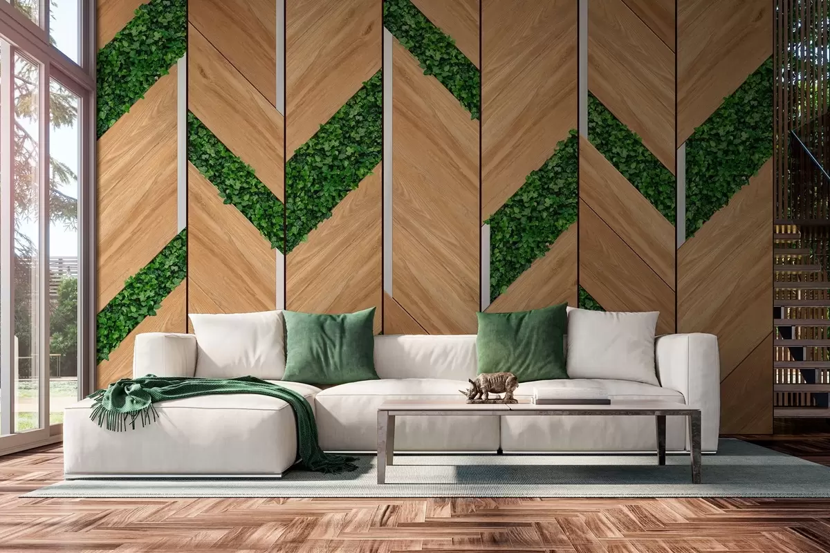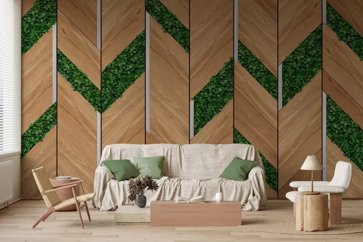 Stenske poslikave imitacija svetlih lesenih plošč z vstavki iz rastlin Št. w04875