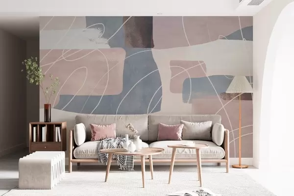 Stenske poslikave moderna abstrakcija v odtenkih roza, sivo-modre, bež in rjave barve Št. w04877