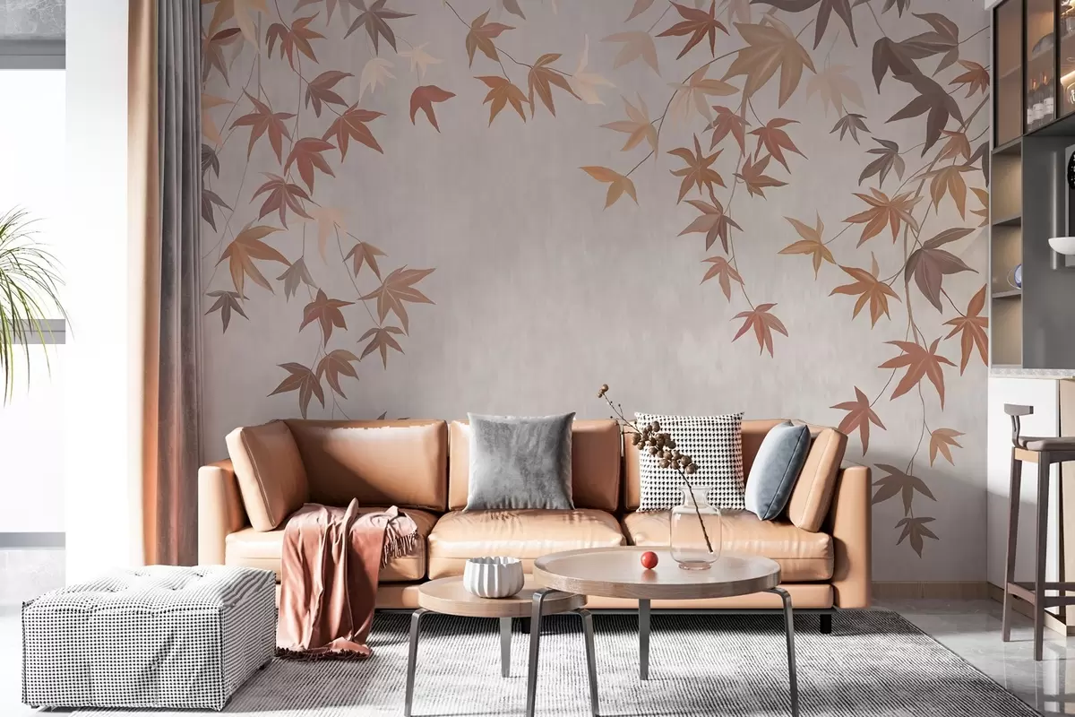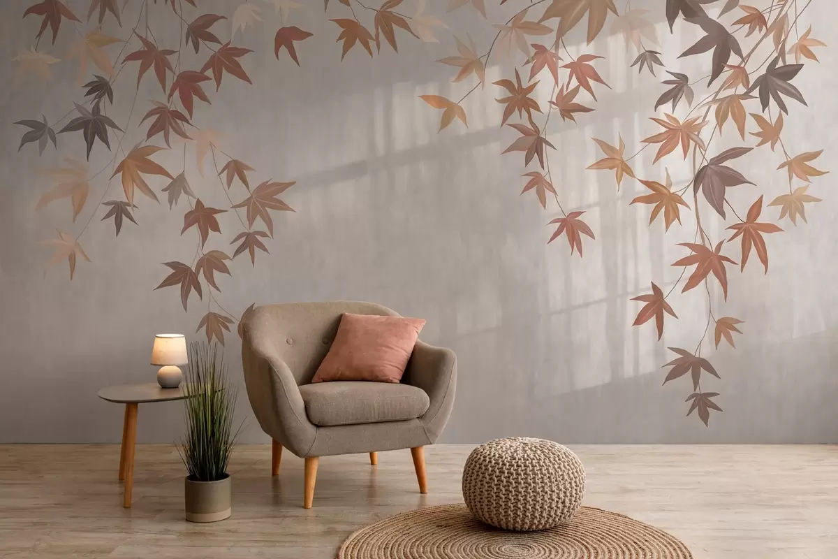 Stenske poslikave večbarvni listi bršljana, ki padajo z neba v slogu oljnega slikarstva Št. w04878