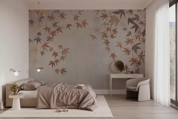 Stenske poslikave večbarvni listi bršljana, ki padajo z neba v slogu oljnega slikarstva Št. w04878
