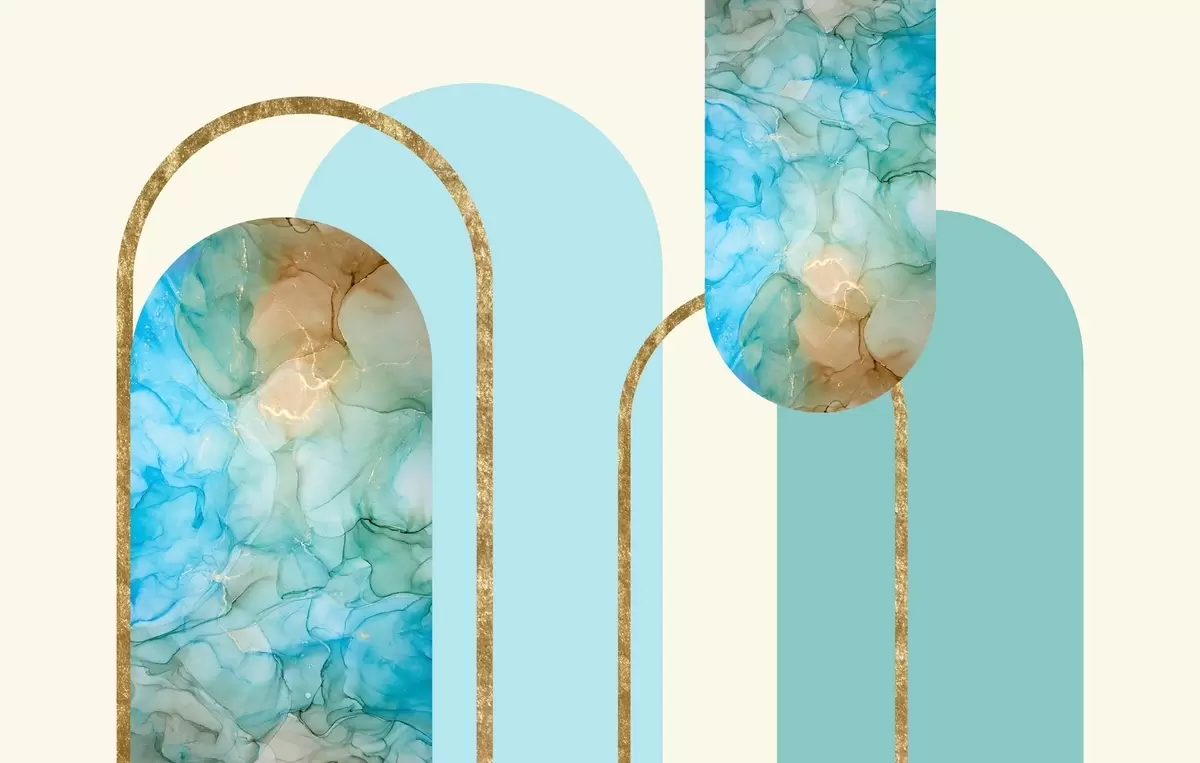 Stenske poslikave elegantni loki z imitacijo marmorja v slogu art deco Št. w04879