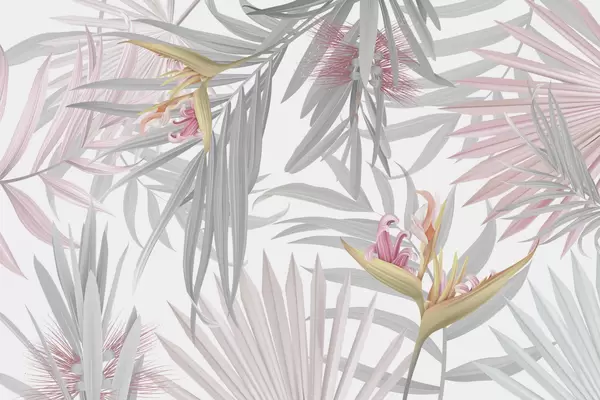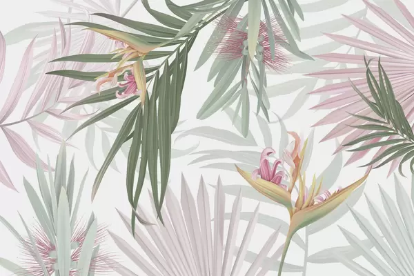 Stenske poslikave Strelitzia v listju palme Št. w04896