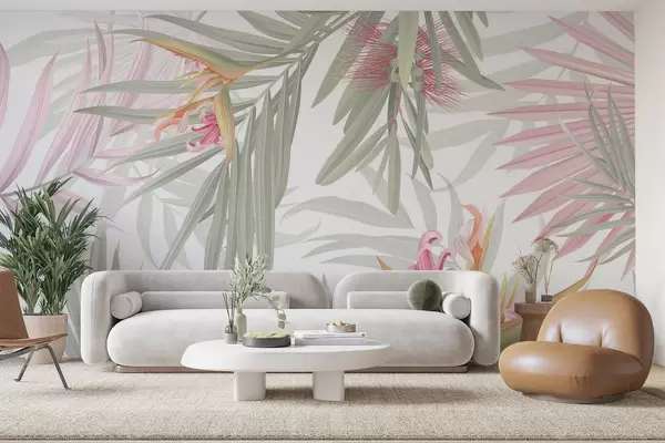 Stenske poslikave Strelitzia v listju palme Št. w04896v1