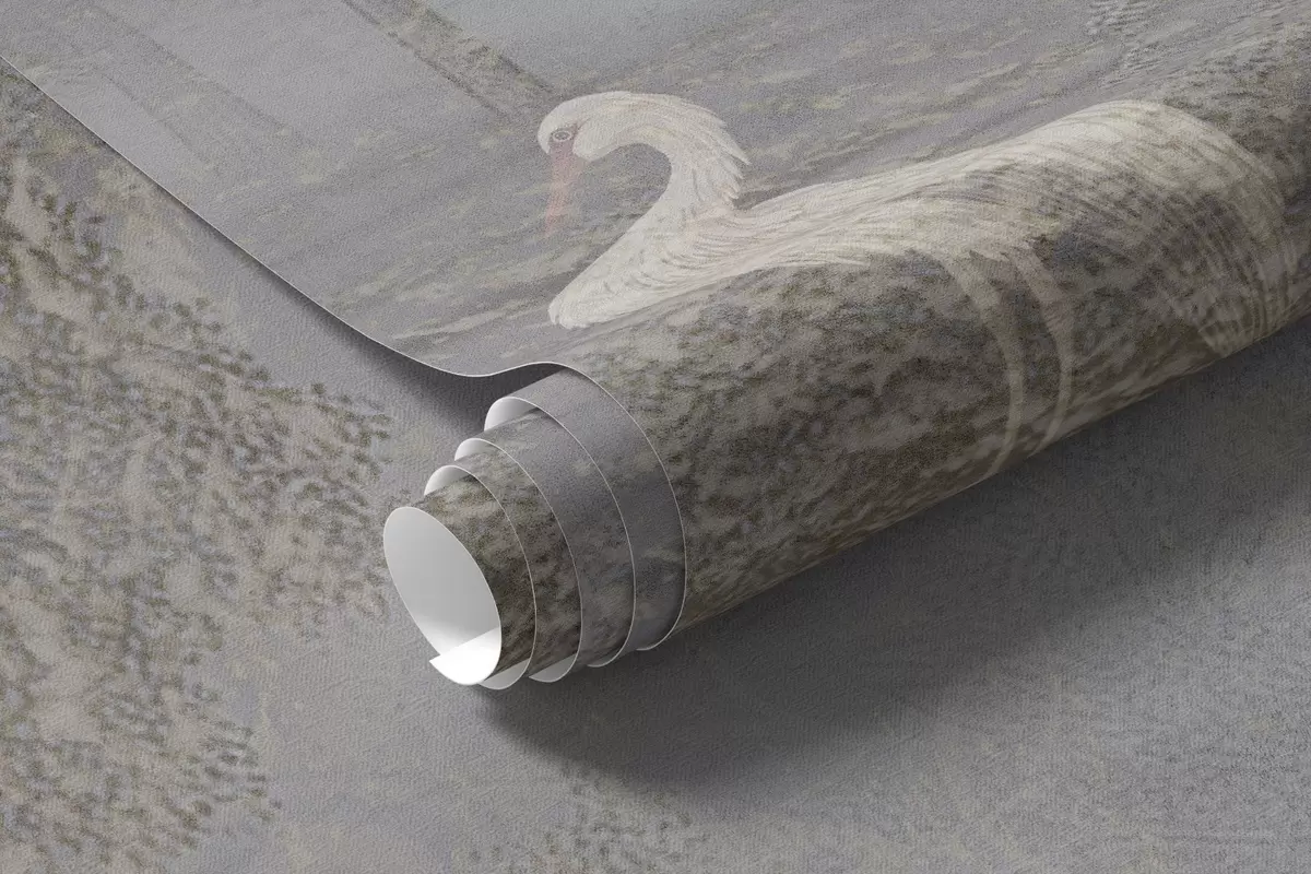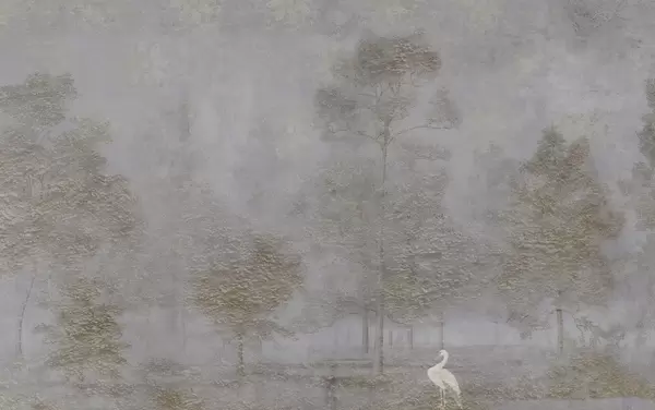 Stenske poslikave Meglen gozd z belo čapljo in mehko teksturo Št. w04953