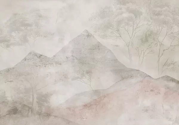 Stenske poslikave Mehke pastelne gore in drevesa v rahli megli Št. w04954