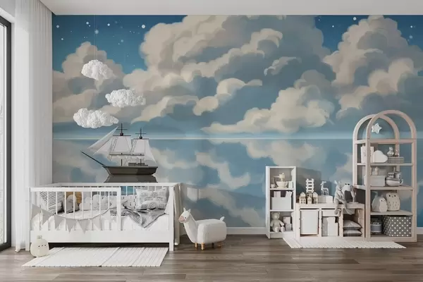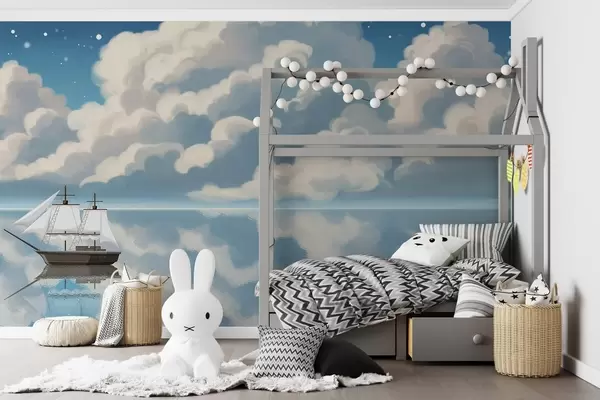 Stenske poslikave Goste oblake nad vodo Št. w04996