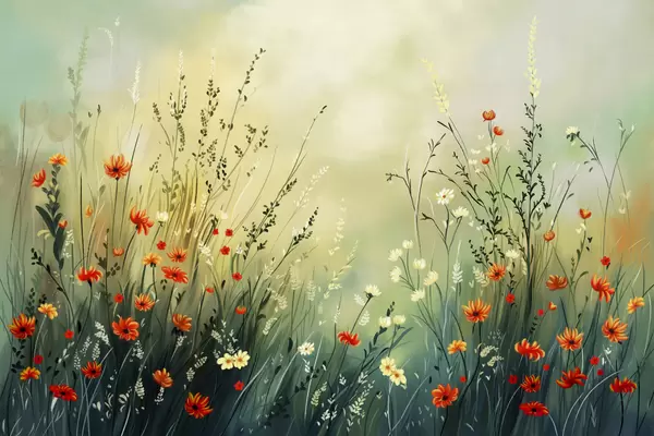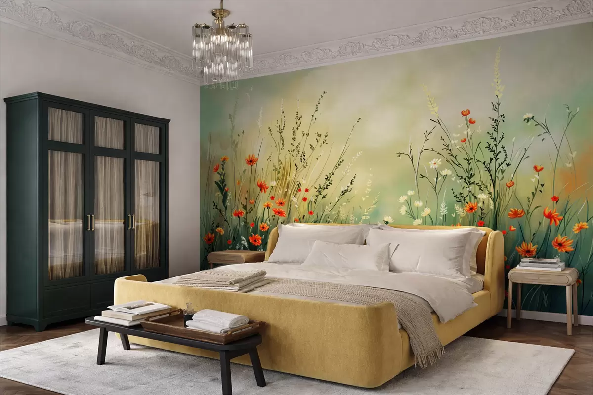 Stenske poslikave Travniške rože in trave v mehkem slikarskem slogu Št. w05015