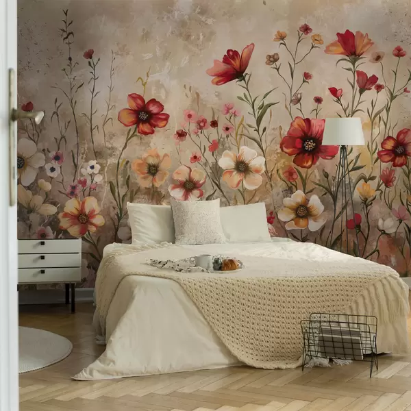 Stenske poslikave Cvetlična kompozicija s teksturiranim ozadjem v toplih tonih Št. w05016