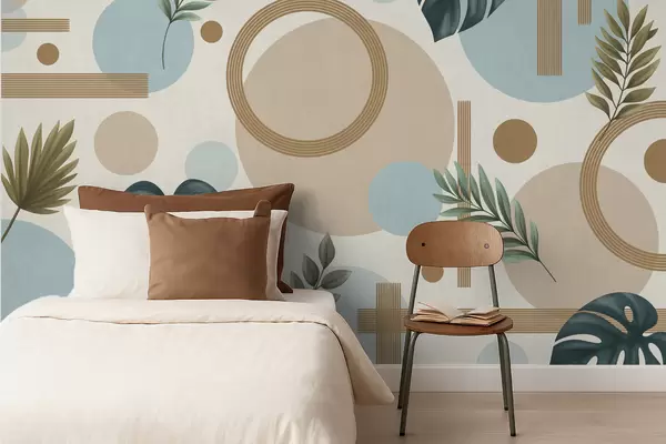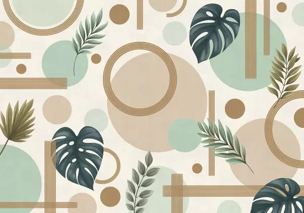 Stenske poslikave Geometrični vzorec z listi in krogi v mirnih tonih Št. w05018