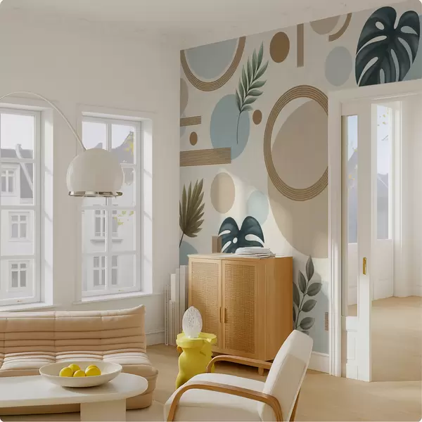 Stenske poslikave Geometrični vzorec z listi in krogi v mirnih tonih Št. w05018